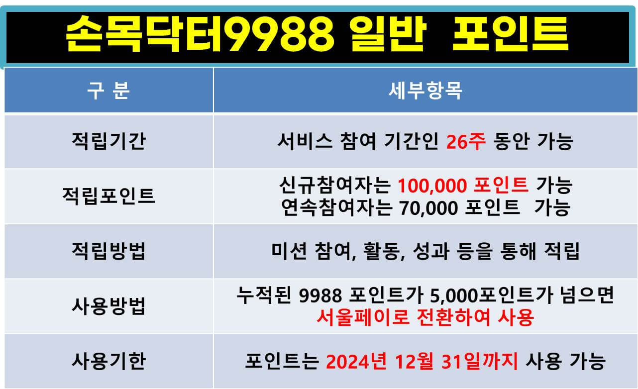 손목닥터9988 포인트는 최대 10만 포인트(연속참여자는 7만포인트)까지 적립 가능하며