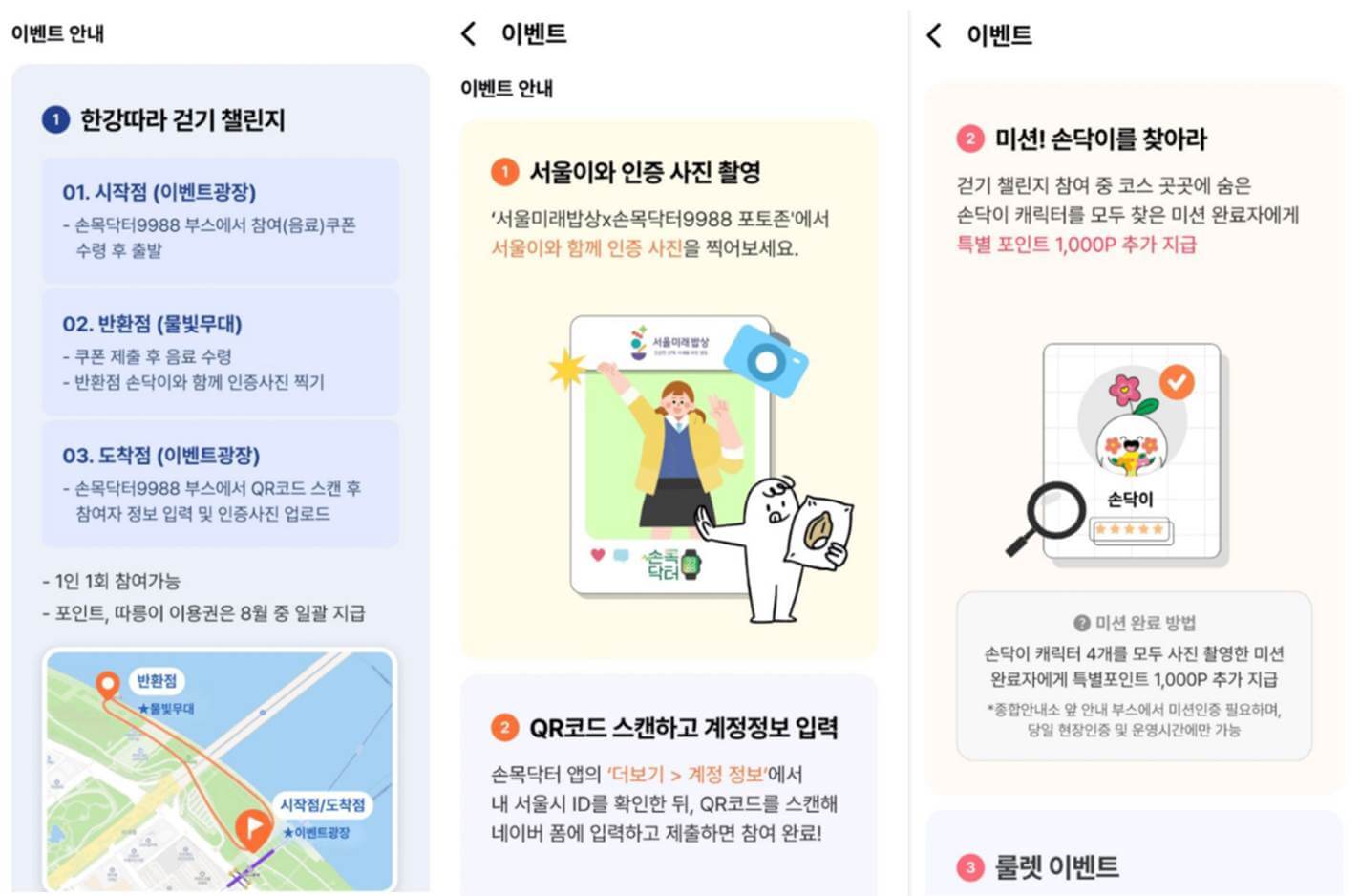 한강따라 걷기 챌린지, 서울이와 인증사진촬영, 미션! 손닥이를 찾아라 등